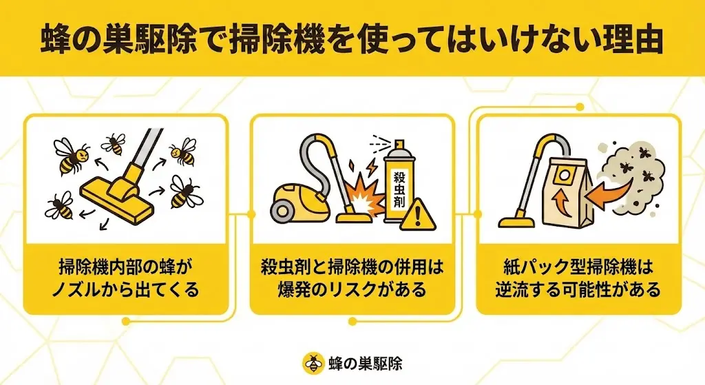 ここでは、蜂の巣駆除で掃除機を使ってはいけない理由を解説していきます。