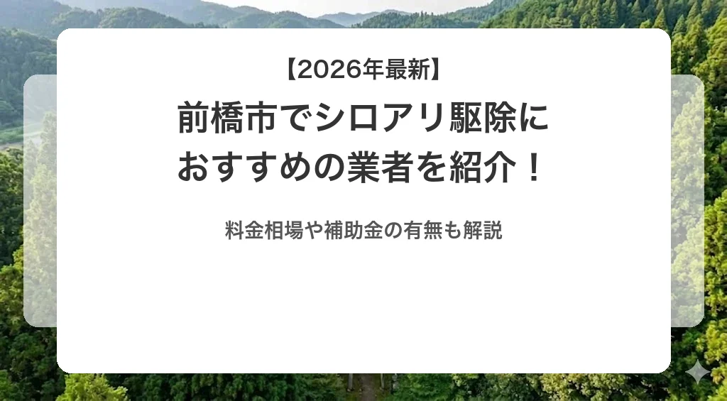 この記事では、前橋市エリアで利用できるおすすめのシロアリ駆除業者をまとめました。