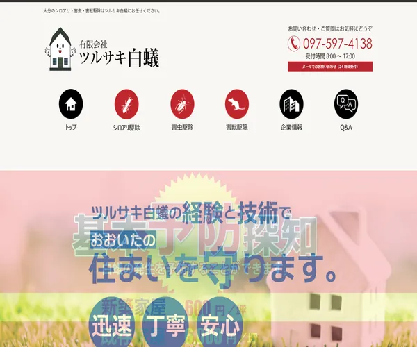 ツルサキ白蟻は、大分市で40年以上にわたりシロアリ・害虫駆除を手がけてきた地域密着型の専門業者です。