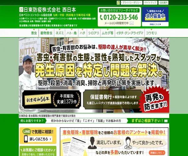 日東防疫は、昭和56年(1981年)創業で40年以上の歴史を持つ別府市の害虫駆除専門業者です。