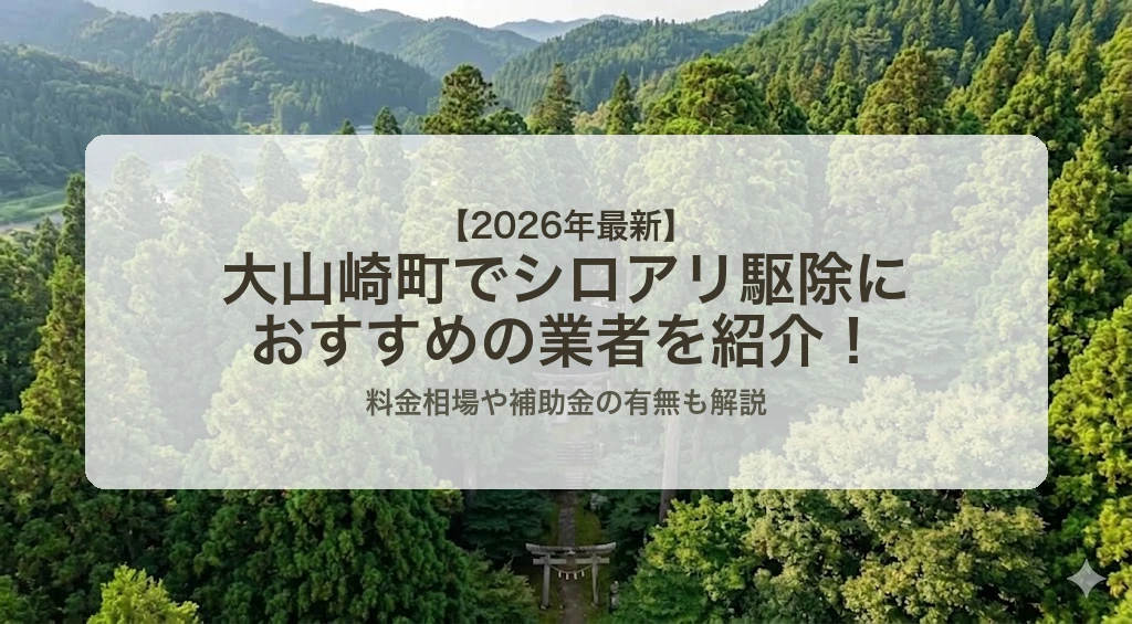 この記事では、大山崎町エリアで利用できるおすすめのシロアリ駆除業者をまとめました。