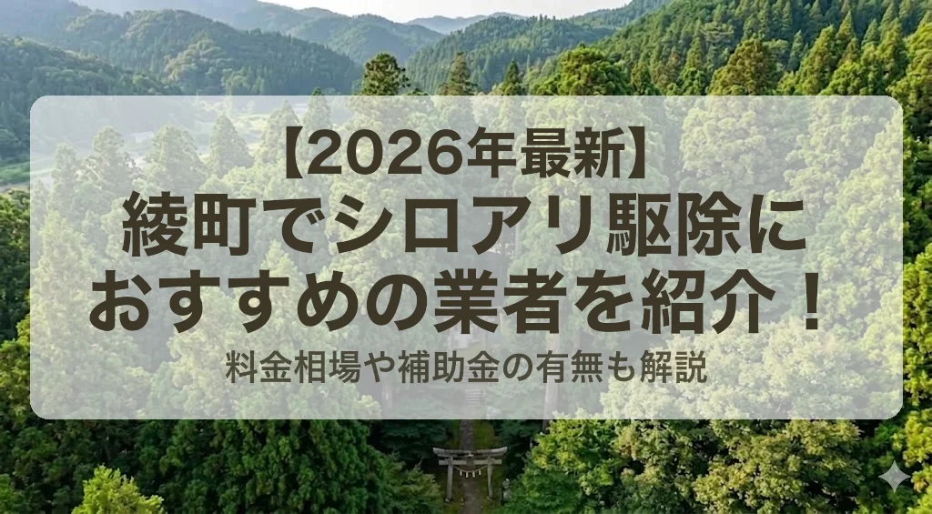 この記事では、綾町エリアで利用できるおすすめのシロアリ駆除業者をまとめました。