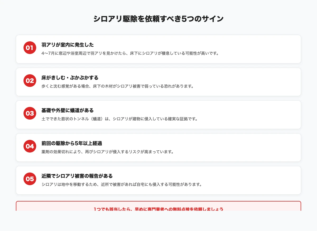 - シロアリ駆除を依頼するべき5つのサイン