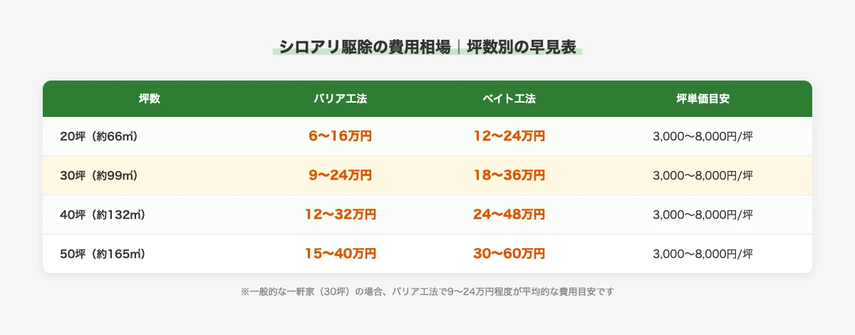 シロアリ駆除の費用は、坪単価をベースに算出されるのが一般的です。