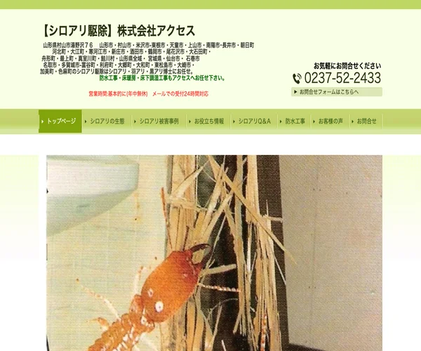 山形県村山市を拠点に創業46年を誇るシロアリ駆除の老舗企業で、官公庁や国・県の重要文化財を含む数万件の施工実績があります。