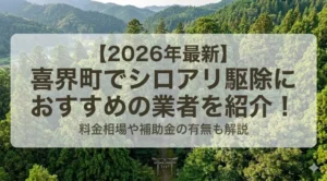 また、業者の選び方や湧水町のシロアリ駆除に対する補助金の有無まで紹介しているので、ぜひ参考にしてみてください。